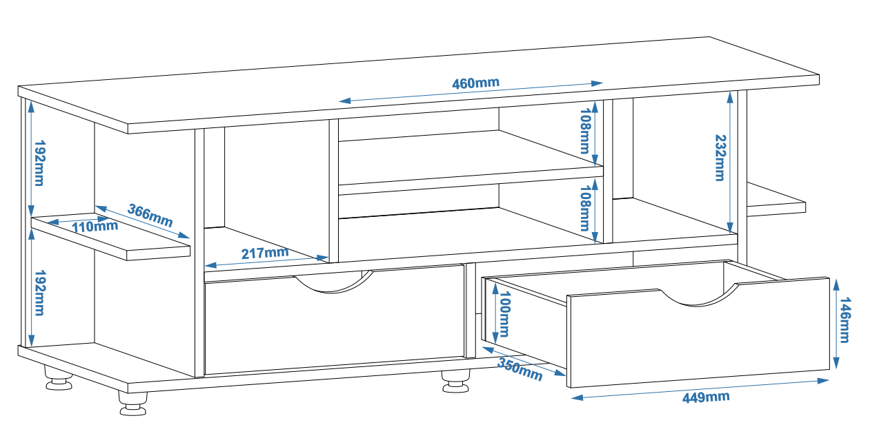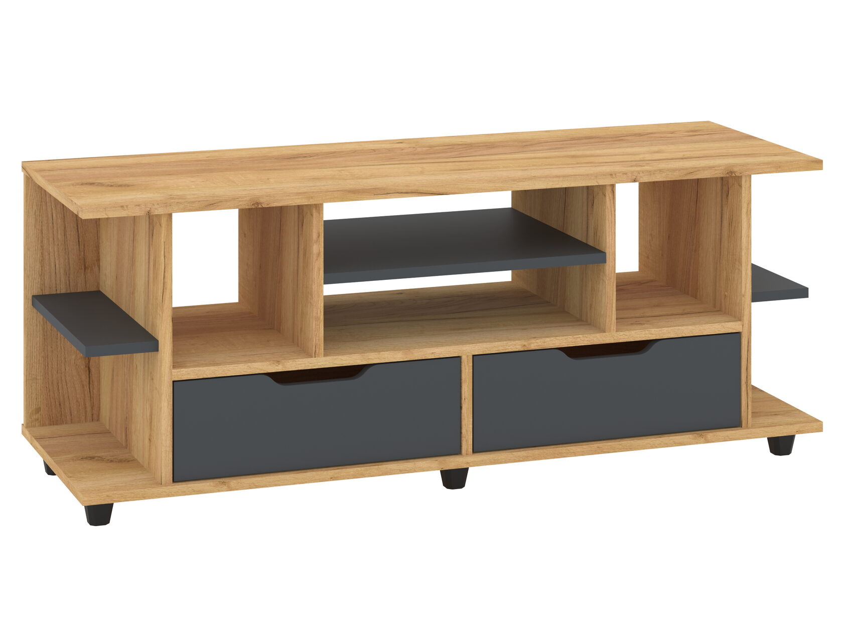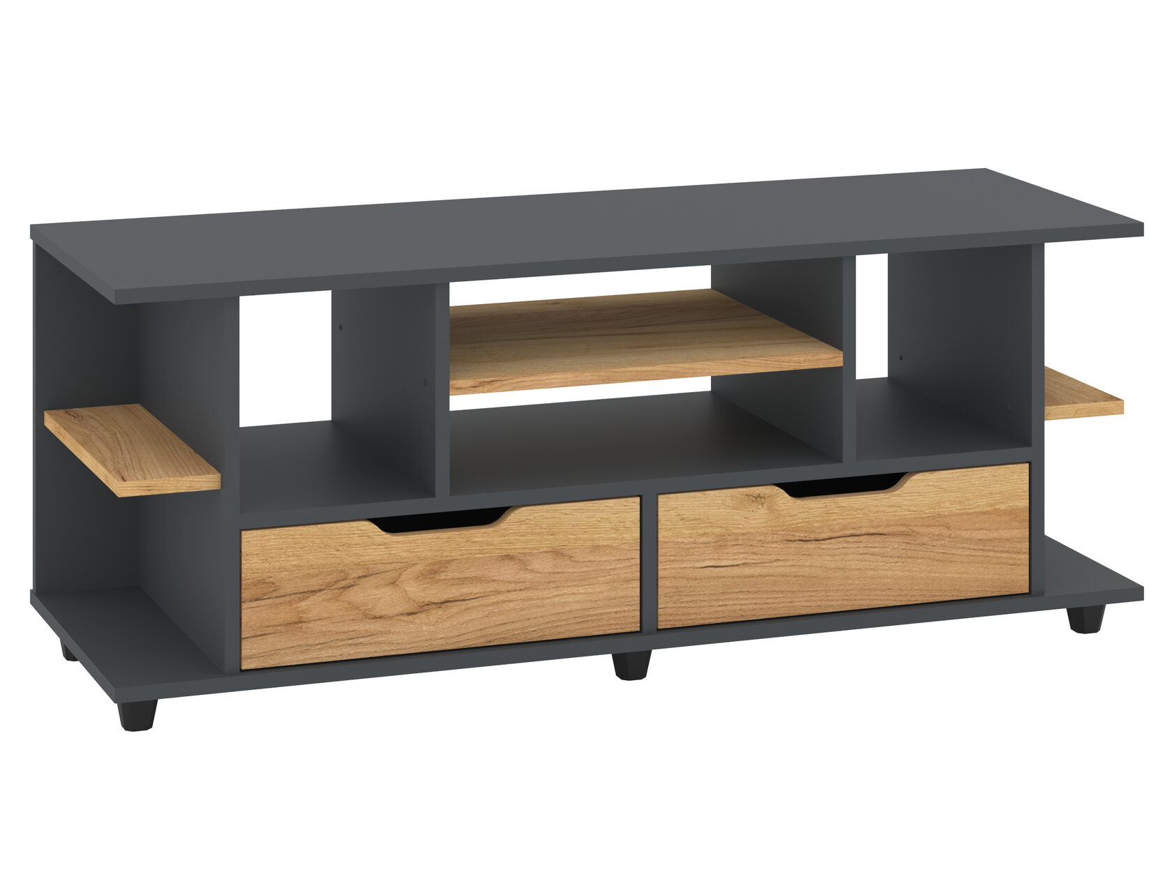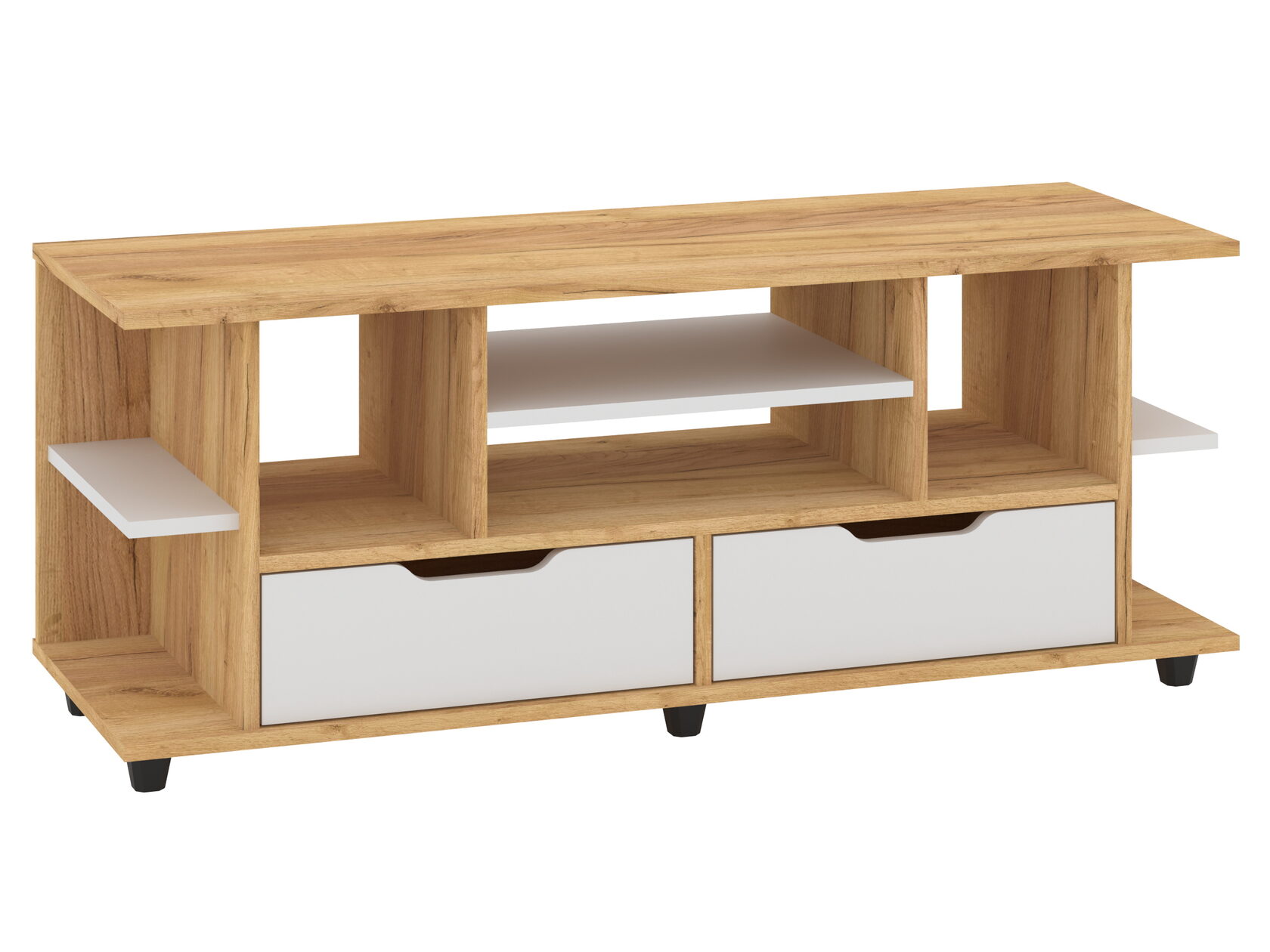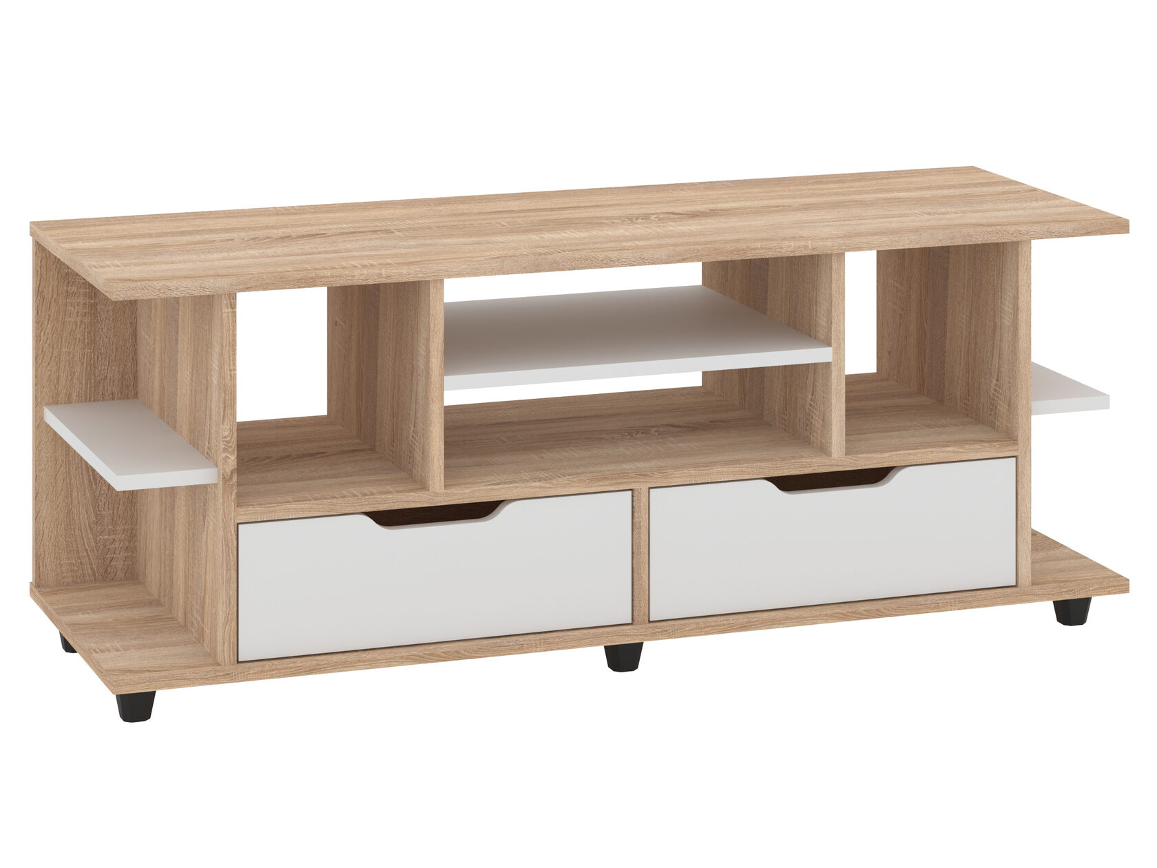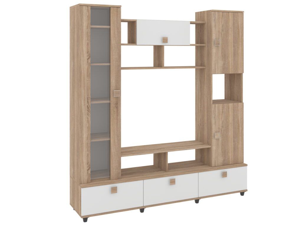 1. Выдвижные ящики: · Количество: 2 просторных ящика. · Оснащение: Направляющие полного выдвижения доводчиком обеспечивают плавный и бесшумный ход. Ящики идеальны для хранения пультов, дисков, игровых консолей, документов и других мелких вещей, которые должны быть под рукой, но не на виду. 2. Открытые полки: · Количество: 1 или 2 полки, расположенные между ящиками или по бокам. · Назначение: Полки обеспечивают быстрый доступ к предметам . На них можно разместить: . Ваши семейные цености · Медиаплеер (Apple TV, Smart TV приставку) · Акустическую систему (саундбар) · Игровую консоль (PlayStation, Xbox) · Небольшую коллекцию книг или декоративных элементов.