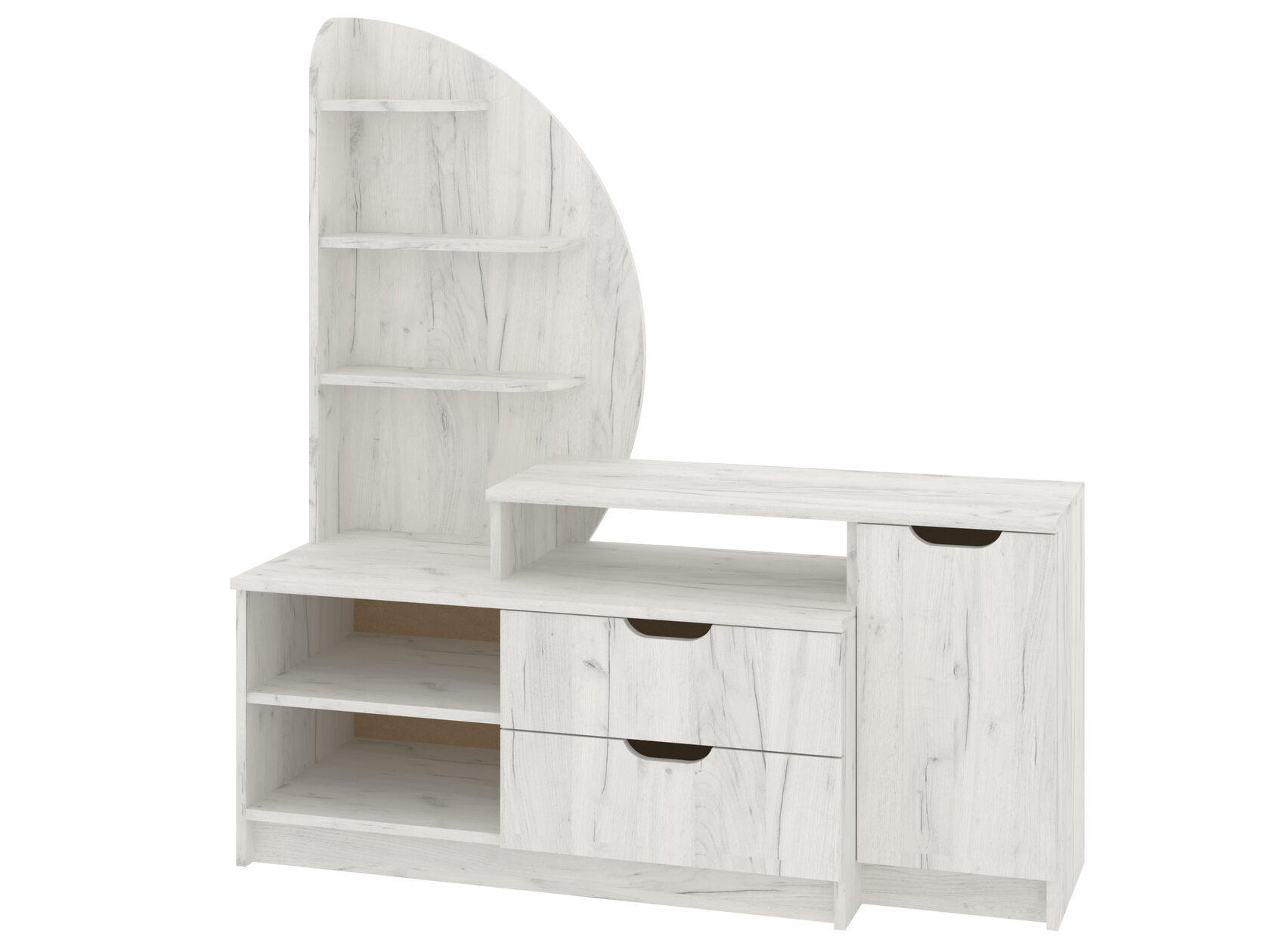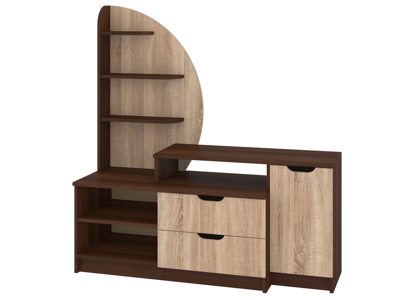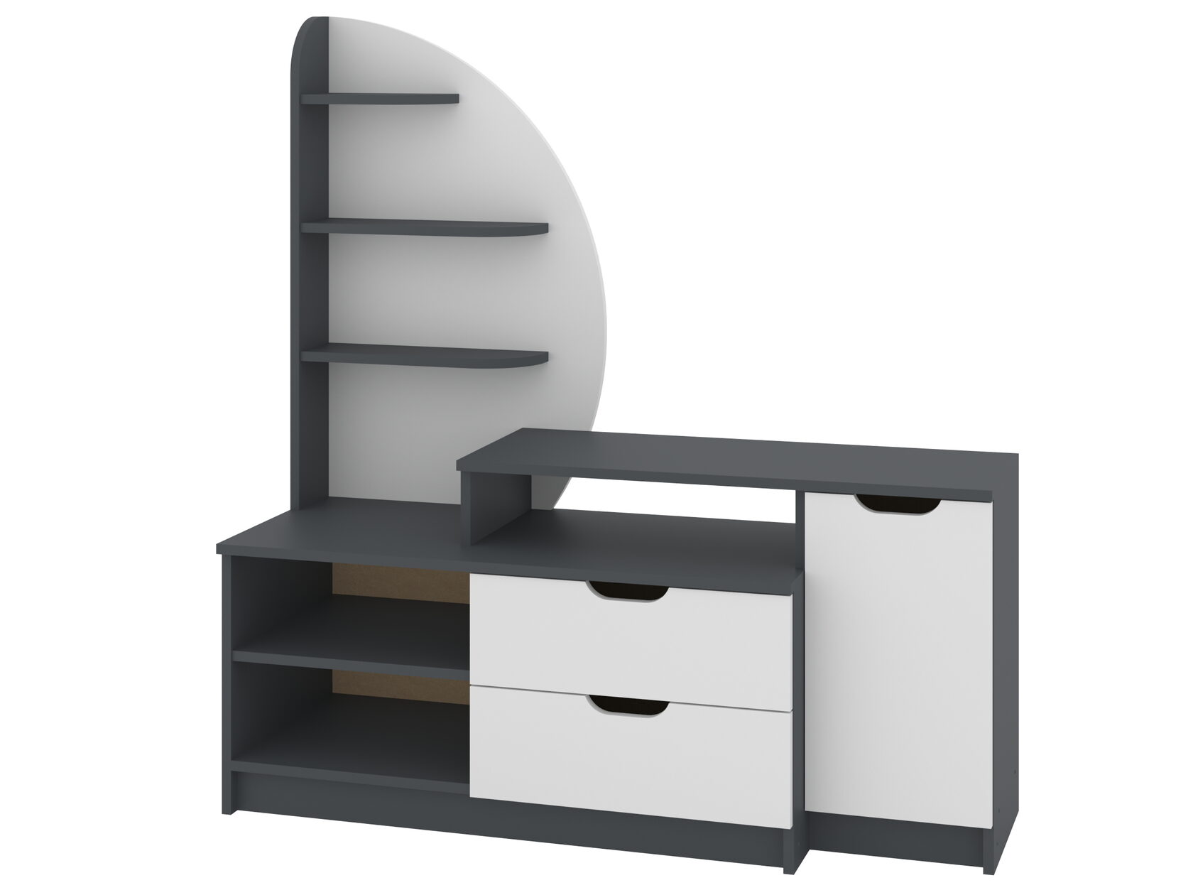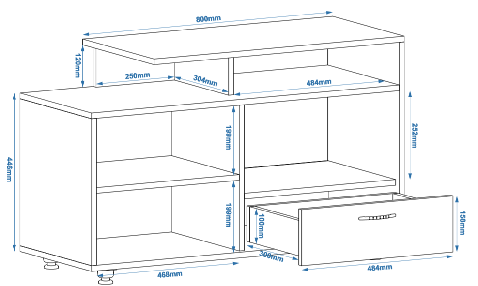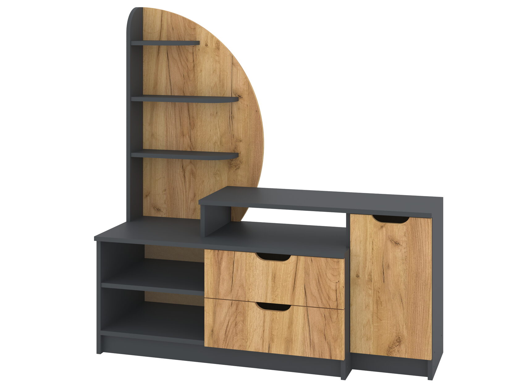 1. Выдвижные ящики: · Количество: 2 просторных ящика. · Оснащение: Направляющие полного выдвижения доводчиком обеспечивают плавный и бесшумный ход. Ящики идеальны для хранения пультов, дисков, игровых консолей, документов и других мелких вещей, которые должны быть под рукой, но не на виду. 2. Открытые полки: · Количество: 1 или 2 полки, расположенные между ящиками или по бокам. · Назначение: Полки обеспечивают быстрый доступ к предметам . На них можно разместить: . Ваши семейные цености · Медиаплеер (Apple TV, Smart TV приставку) · Акустическую систему (саундбар) · Игровую консоль (PlayStation, Xbox) · Небольшую коллекцию книг или декоративных элементов.
