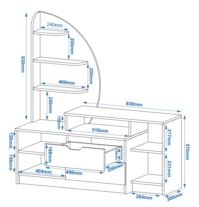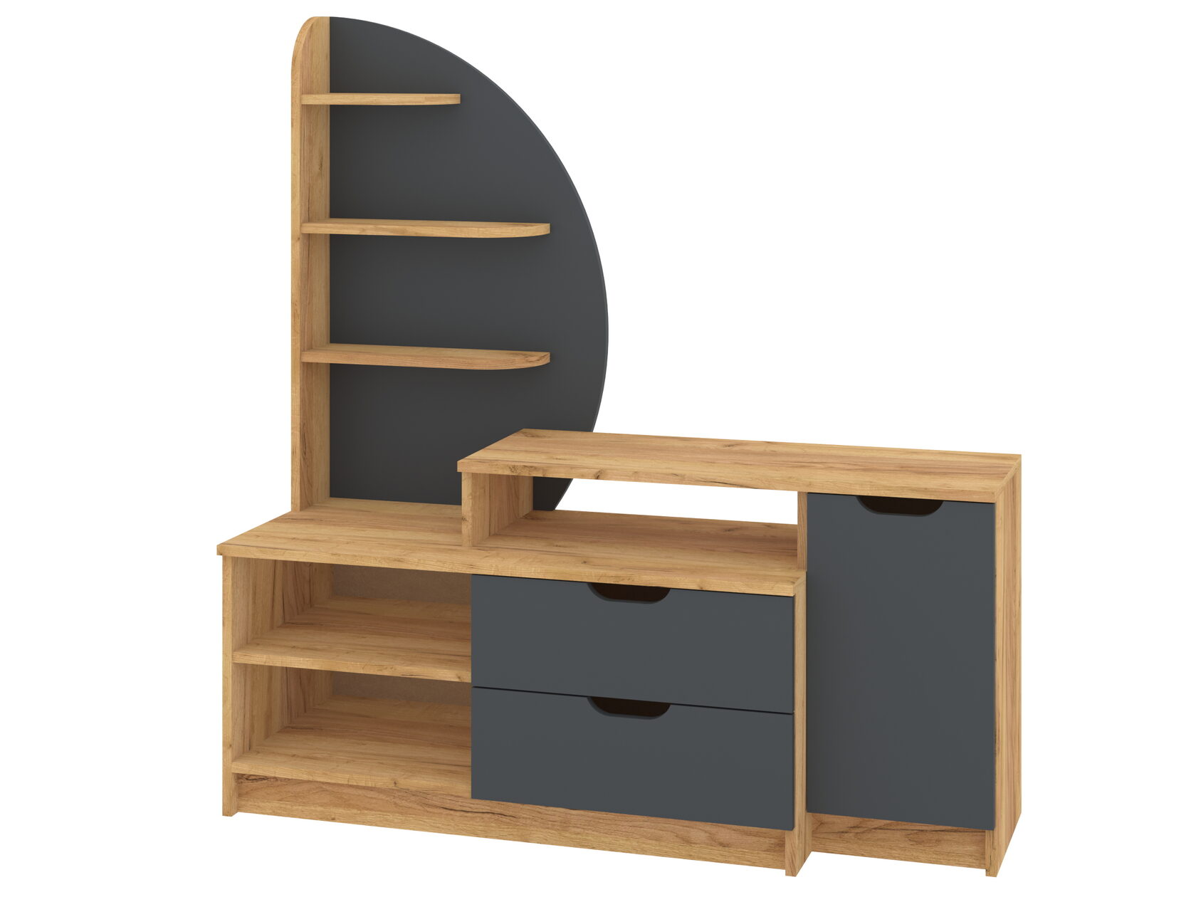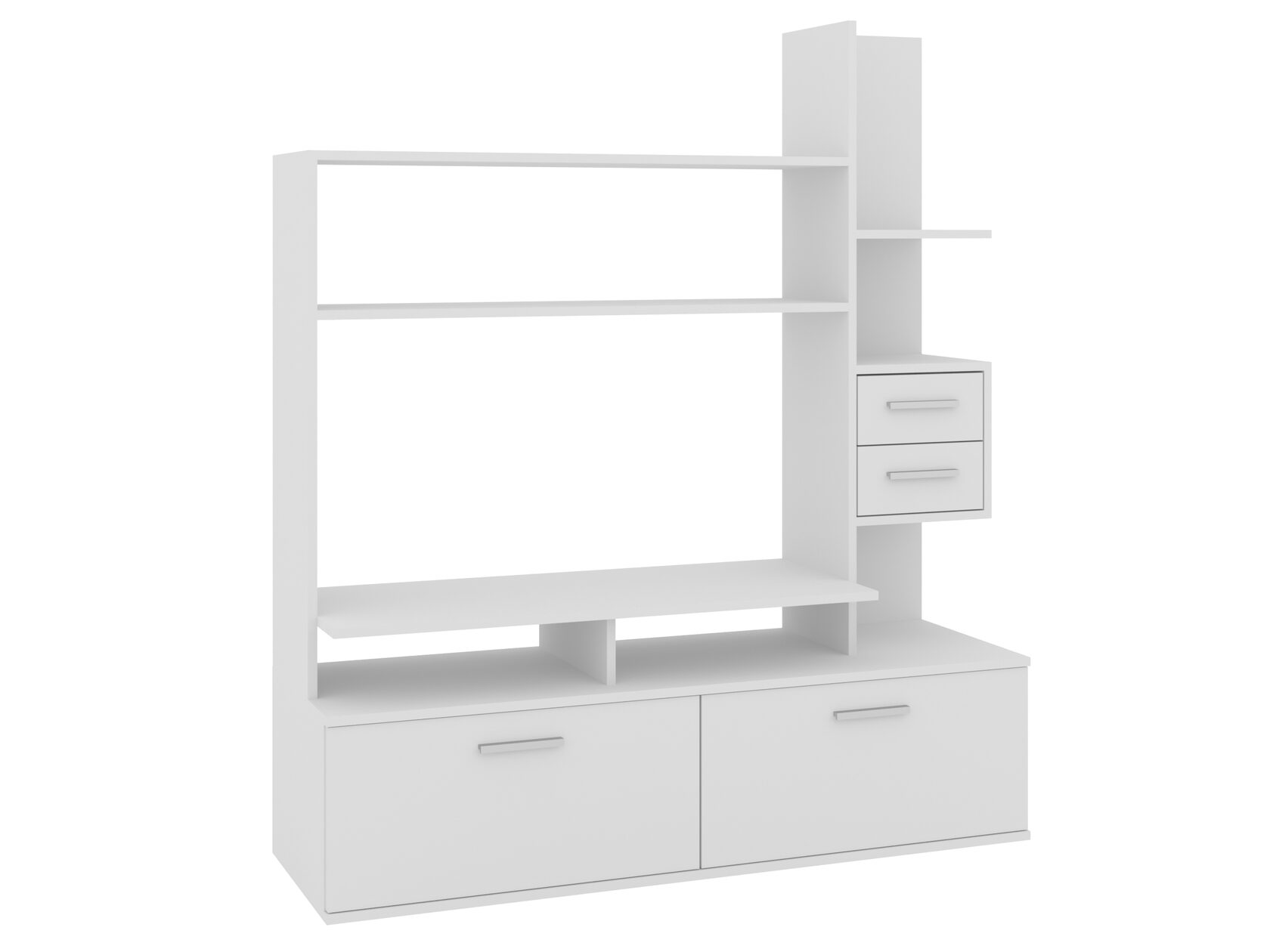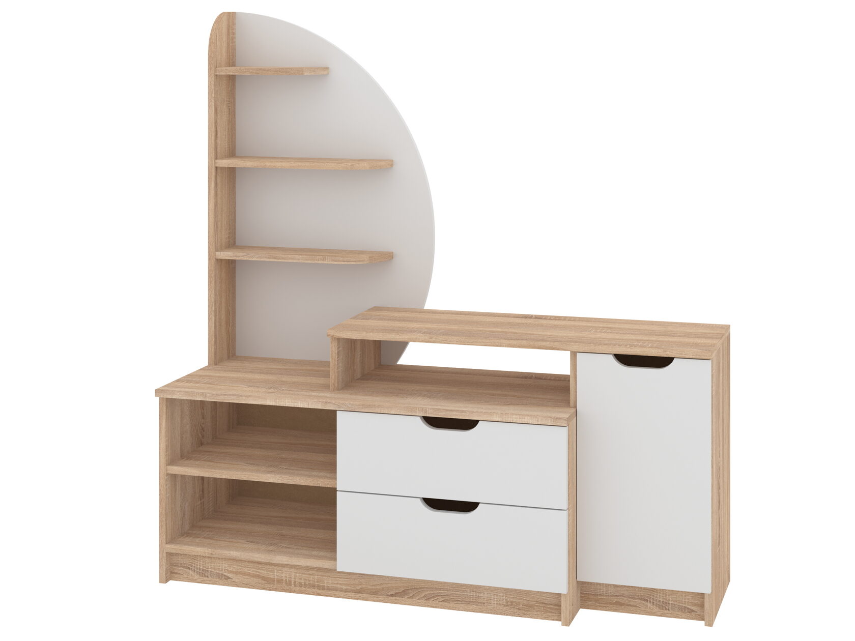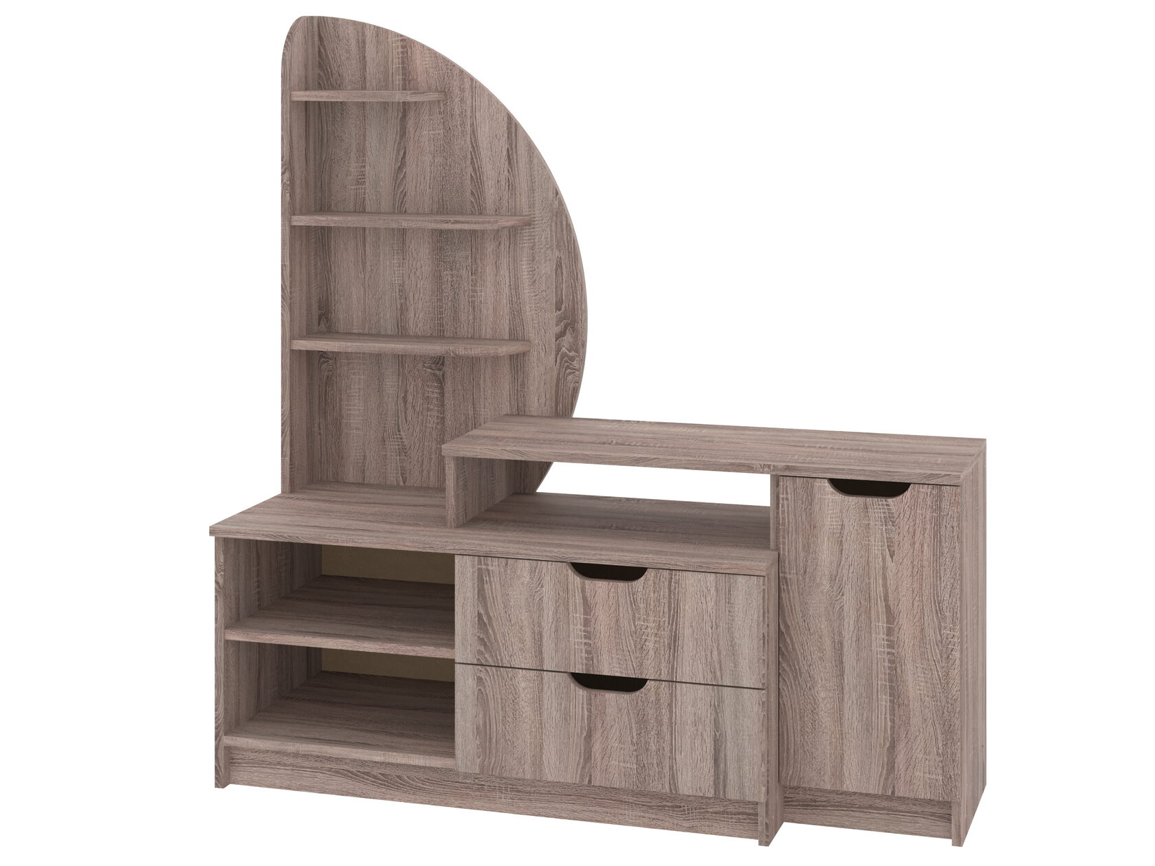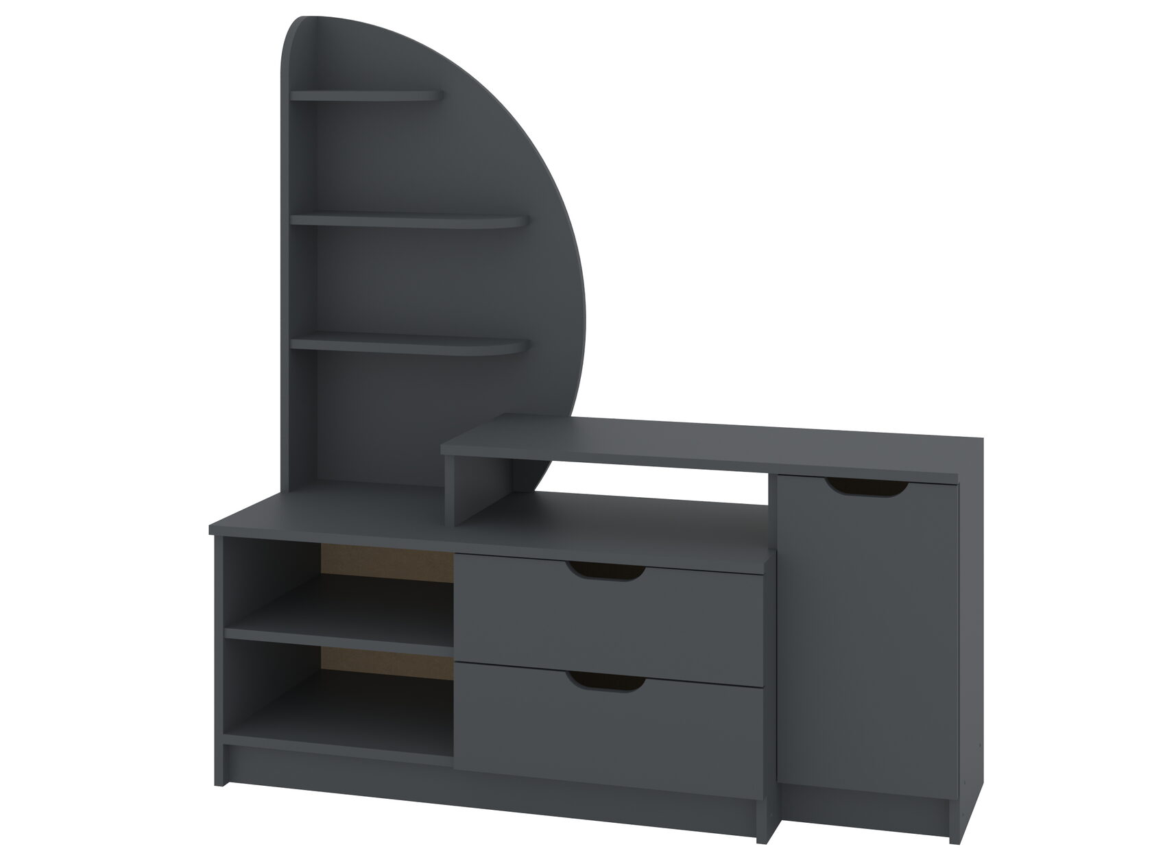 1. Выдвижные ящики: · Количество: 2 просторных ящика. · Оснащение: Направляющие полного выдвижения доводчиком обеспечивают плавный и бесшумный ход. Ящики идеальны для хранения пультов, дисков, игровых консолей, документов и других мелких вещей, которые должны быть под рукой, но не на виду. 2. Открытые полки: · Количество: 1 или 2 полки, расположенные между ящиками или по бокам. · Назначение: Полки обеспечивают быстрый доступ к предметам . На них можно разместить: . Ваши семейные цености · Медиаплеер (Apple TV, Smart TV приставку) · Акустическую систему (саундбар) · Игровую консоль (PlayStation, Xbox) · Небольшую коллекцию книг или декоративных элементов.