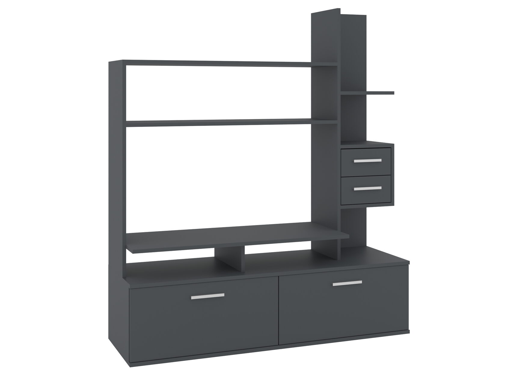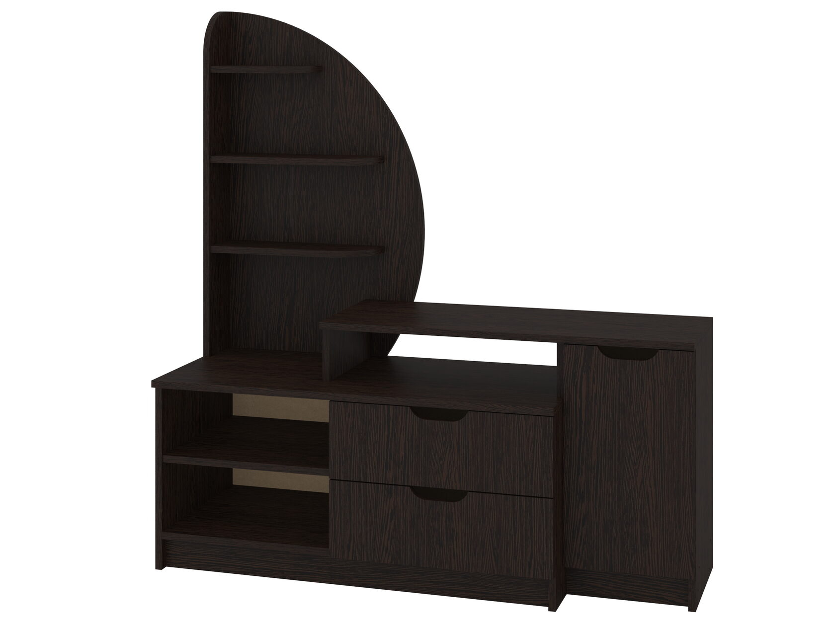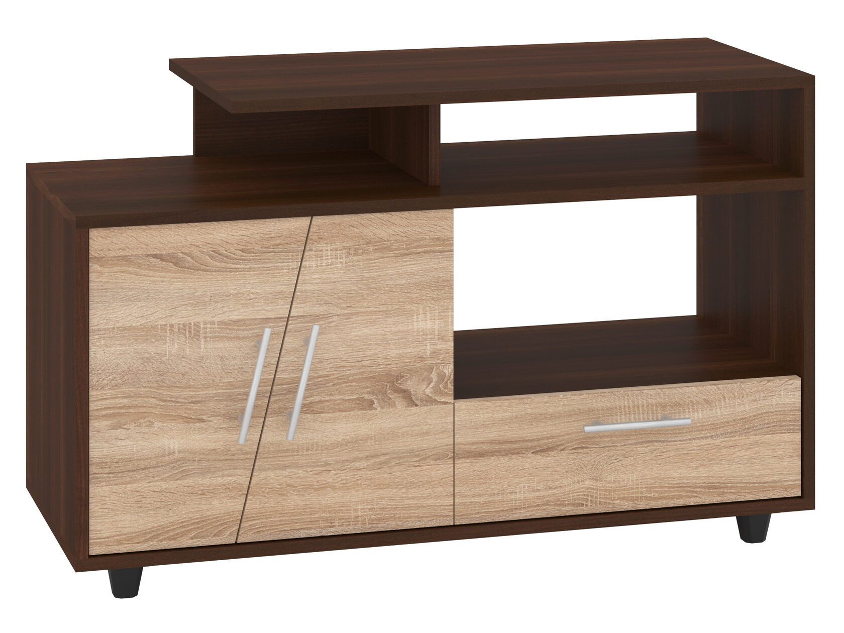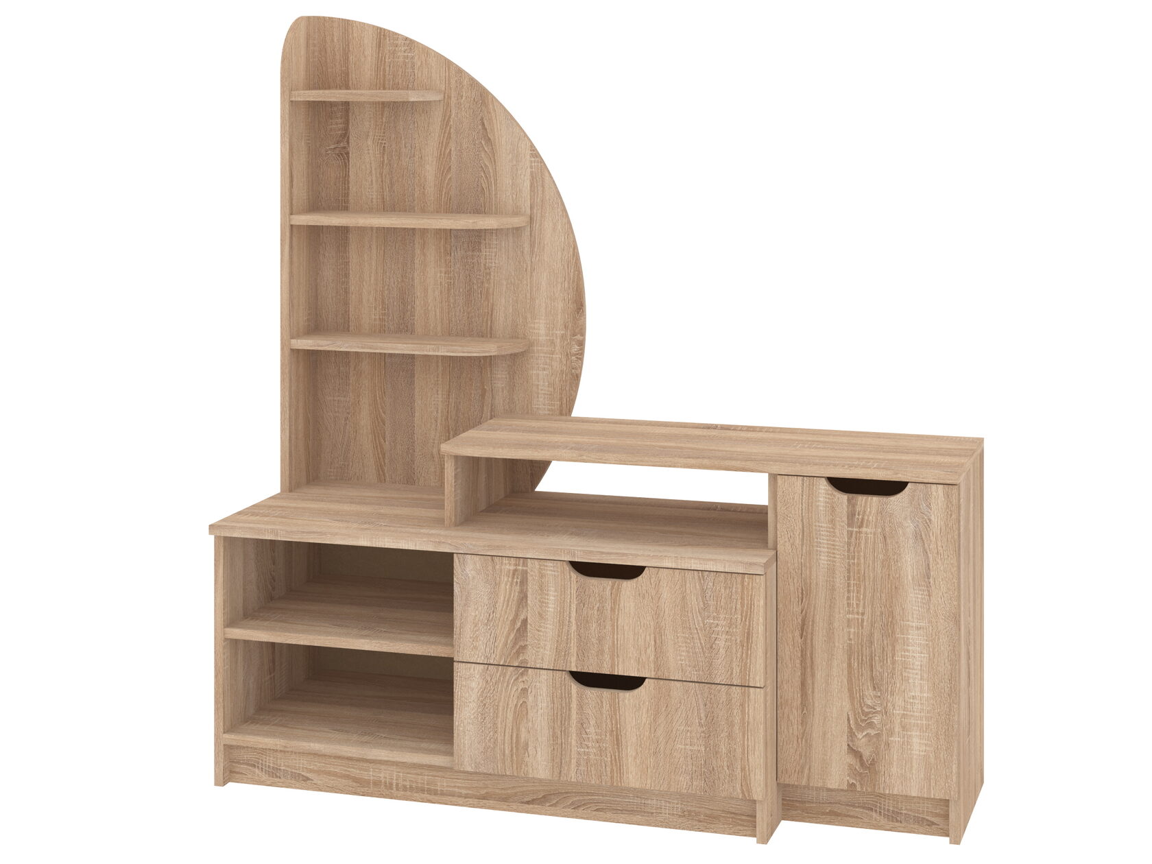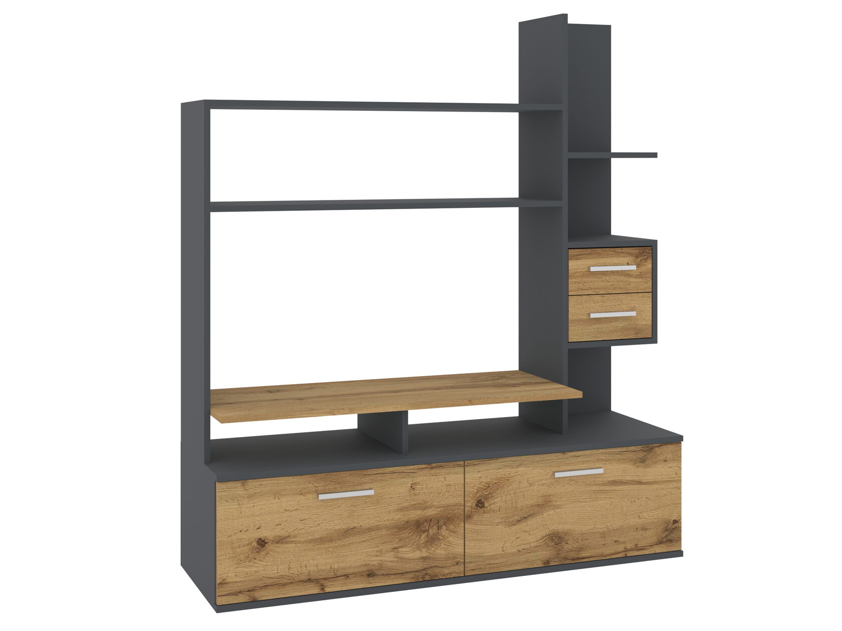 1. Выдвижные ящики: · Количество: 2 просторных ящика. · Оснащение: Направляющие полного выдвижения доводчиком обеспечивают плавный и бесшумный ход. Ящики идеальны для хранения пультов, дисков, игровых консолей, документов и других мелких вещей, которые должны быть под рукой, но не на виду. 2. Открытые полки: · Количество: 1 или 2 полки, расположенные между ящиками или по бокам. · Назначение: Полки обеспечивают быстрый доступ к предметам . На них можно разместить: . Ваши семейные цености · Медиаплеер (Apple TV, Smart TV приставку) · Акустическую систему (саундбар) · Игровую консоль (PlayStation, Xbox) · Небольшую коллекцию книг или декоративных элементов.