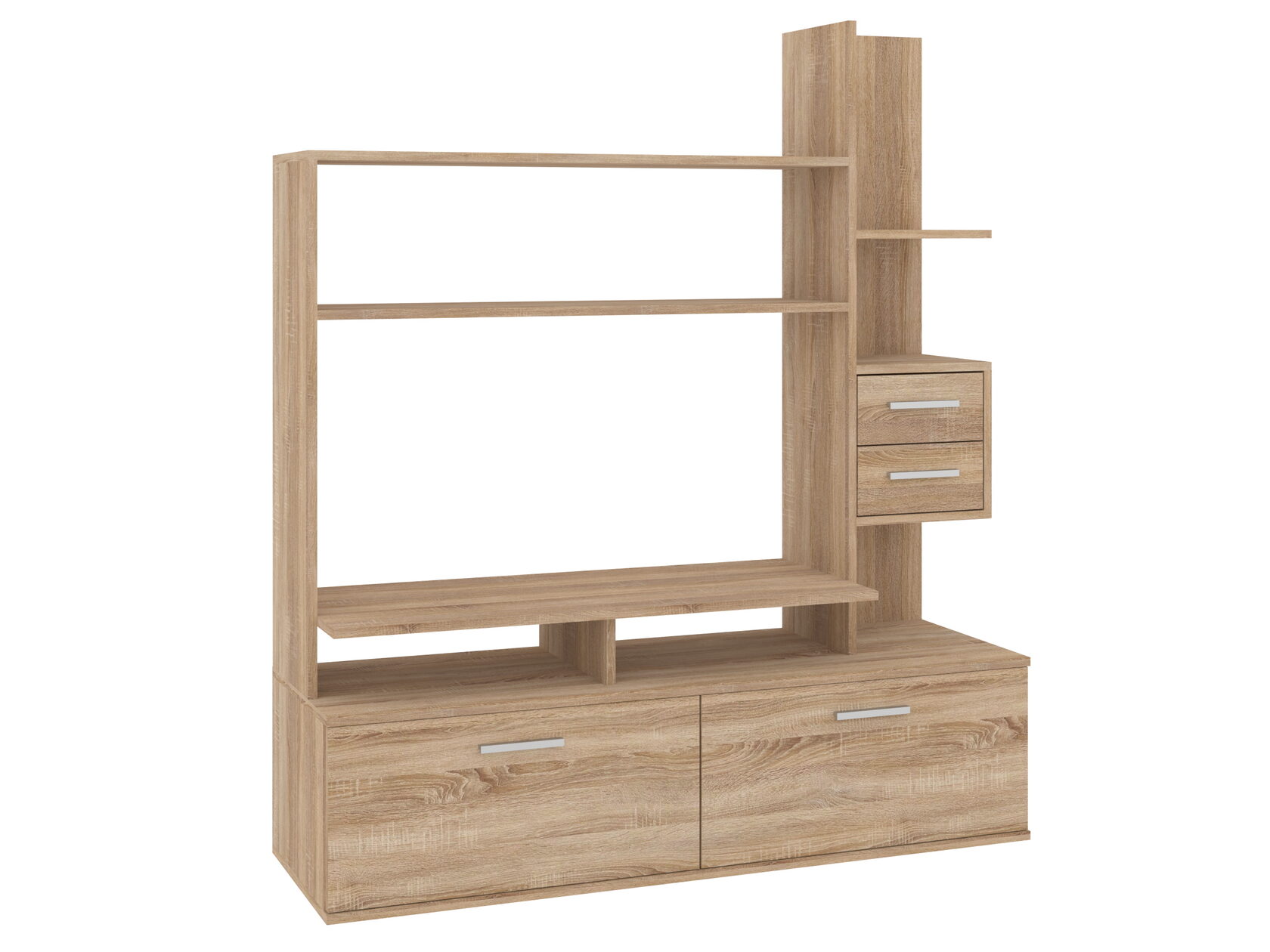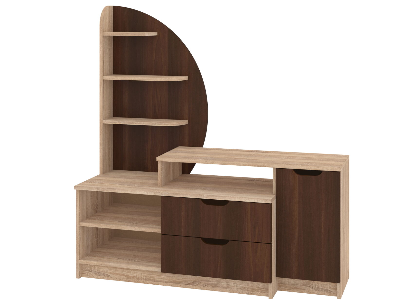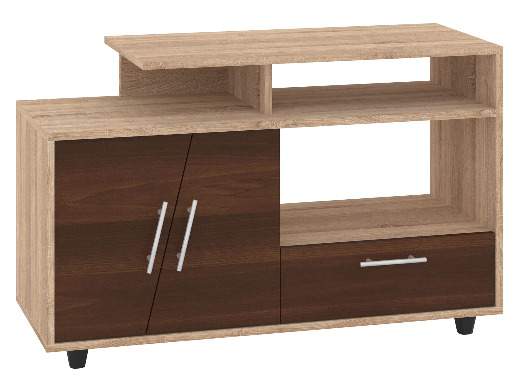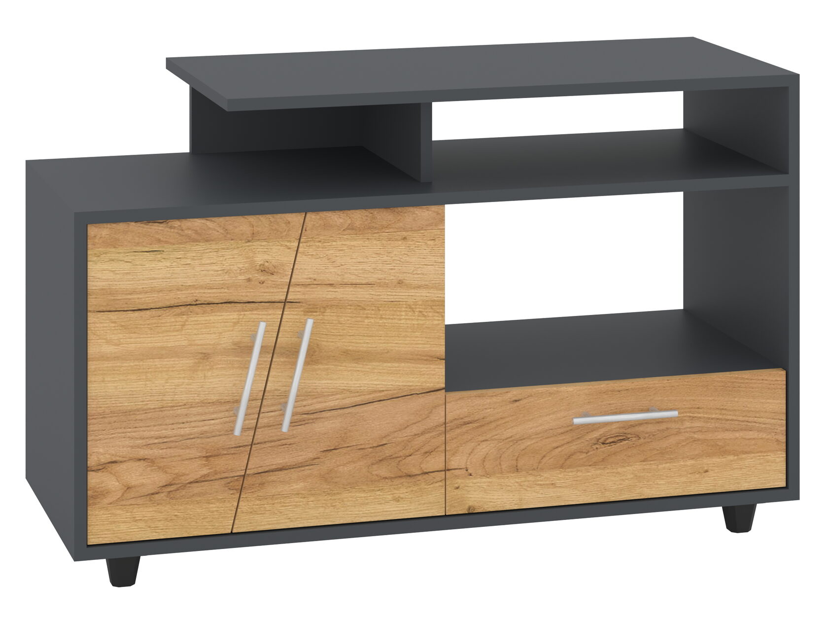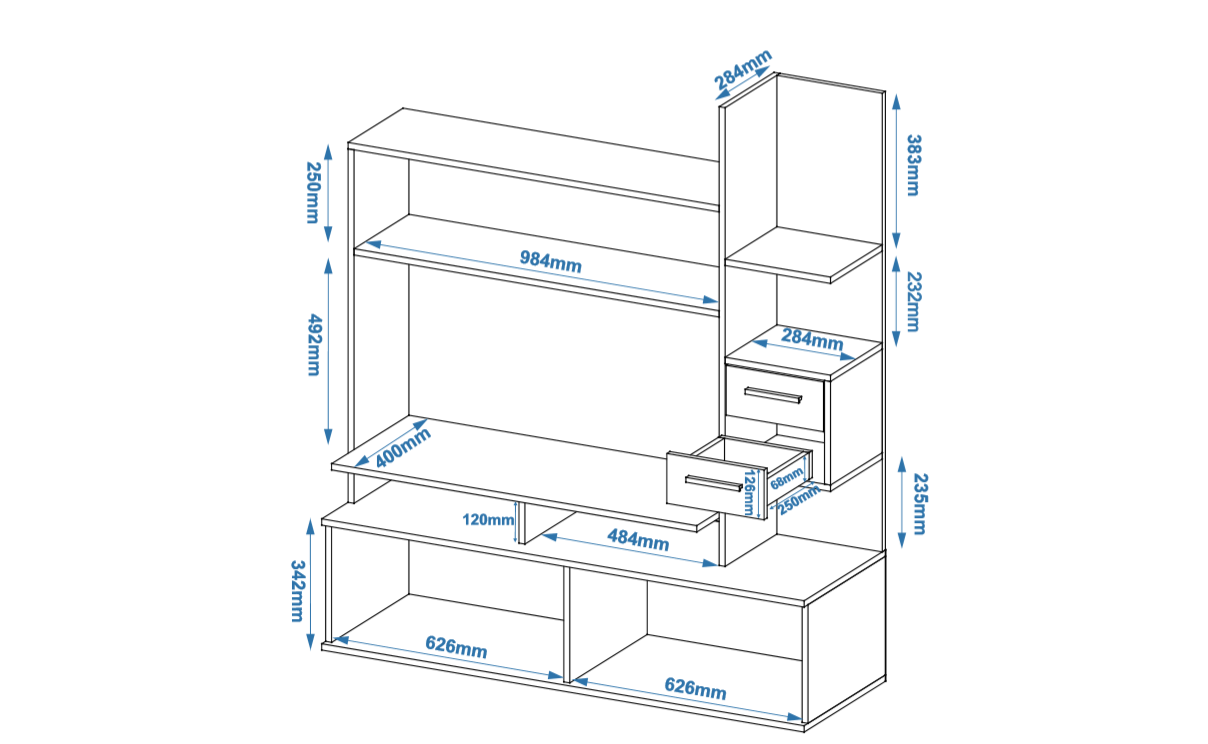 1. Выдвижные ящики: · Количество: 2 просторных ящика. · Оснащение: Направляющие полного выдвижения доводчиком обеспечивают плавный и бесшумный ход. Ящики идеальны для хранения пультов, дисков, игровых консолей, документов и других мелких вещей, которые должны быть под рукой, но не на виду. 2. Открытые полки: · Количество: 1 или 2 полки, расположенные между ящиками или по бокам. · Назначение: Полки обеспечивают быстрый доступ к предметам . На них можно разместить: . Ваши семейные цености · Медиаплеер (Apple TV, Smart TV приставку) · Акустическую систему (саундбар) · Игровую консоль (PlayStation, Xbox) · Небольшую коллекцию книг или декоративных элементов.
