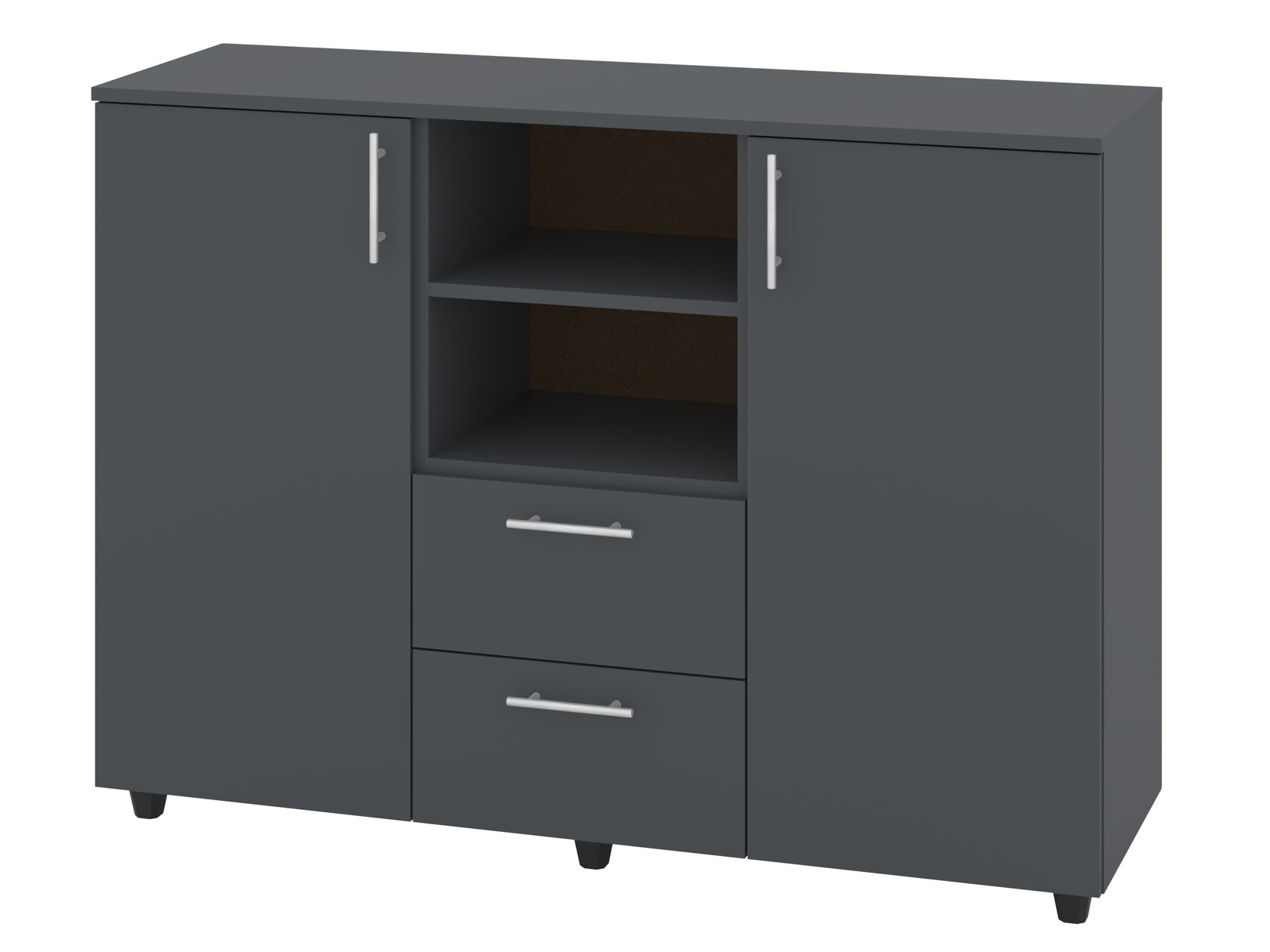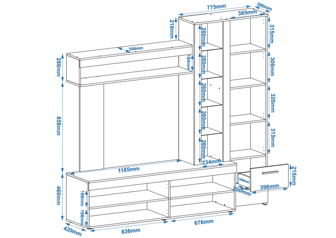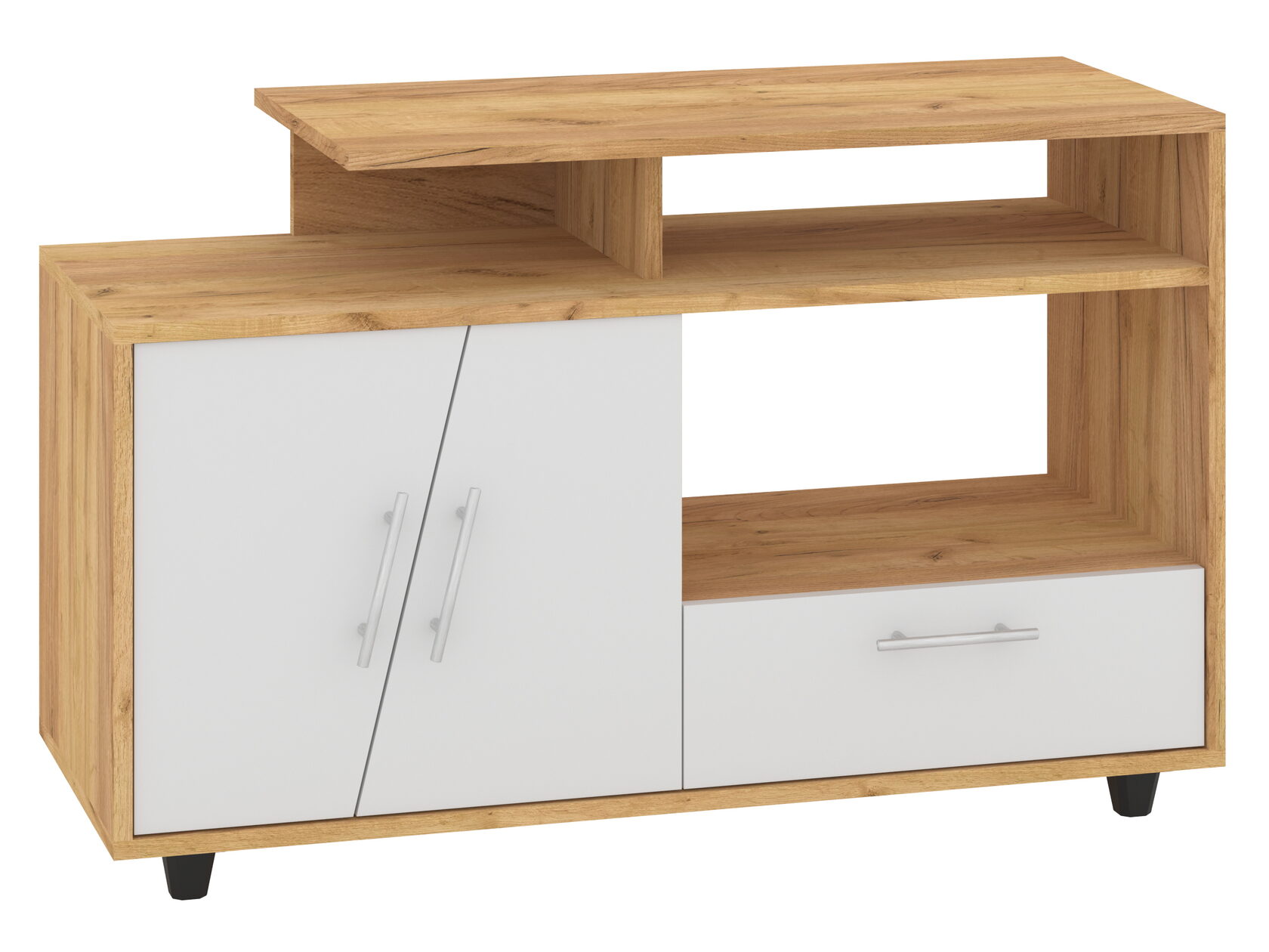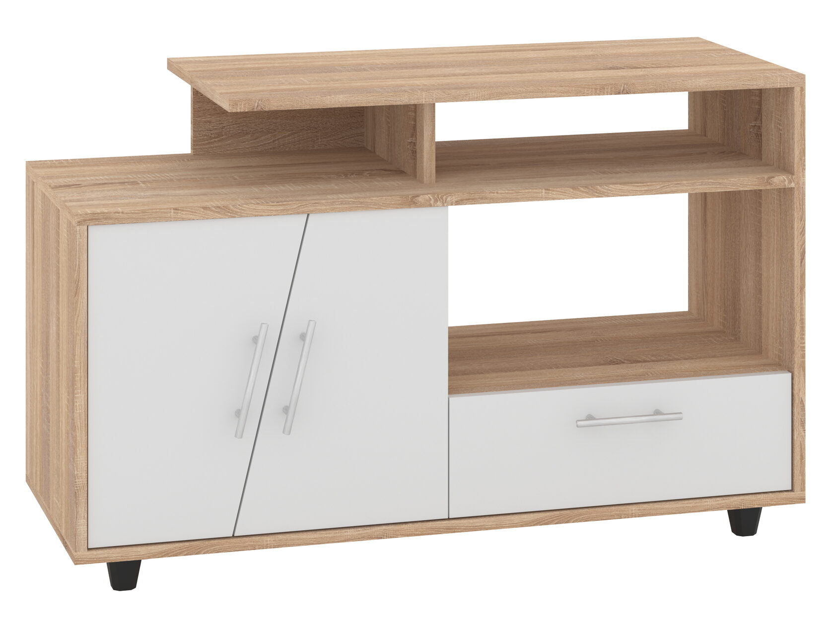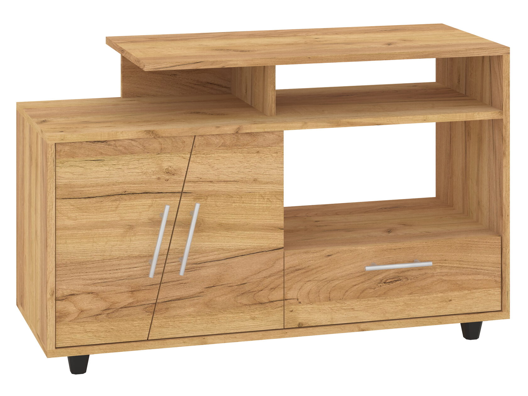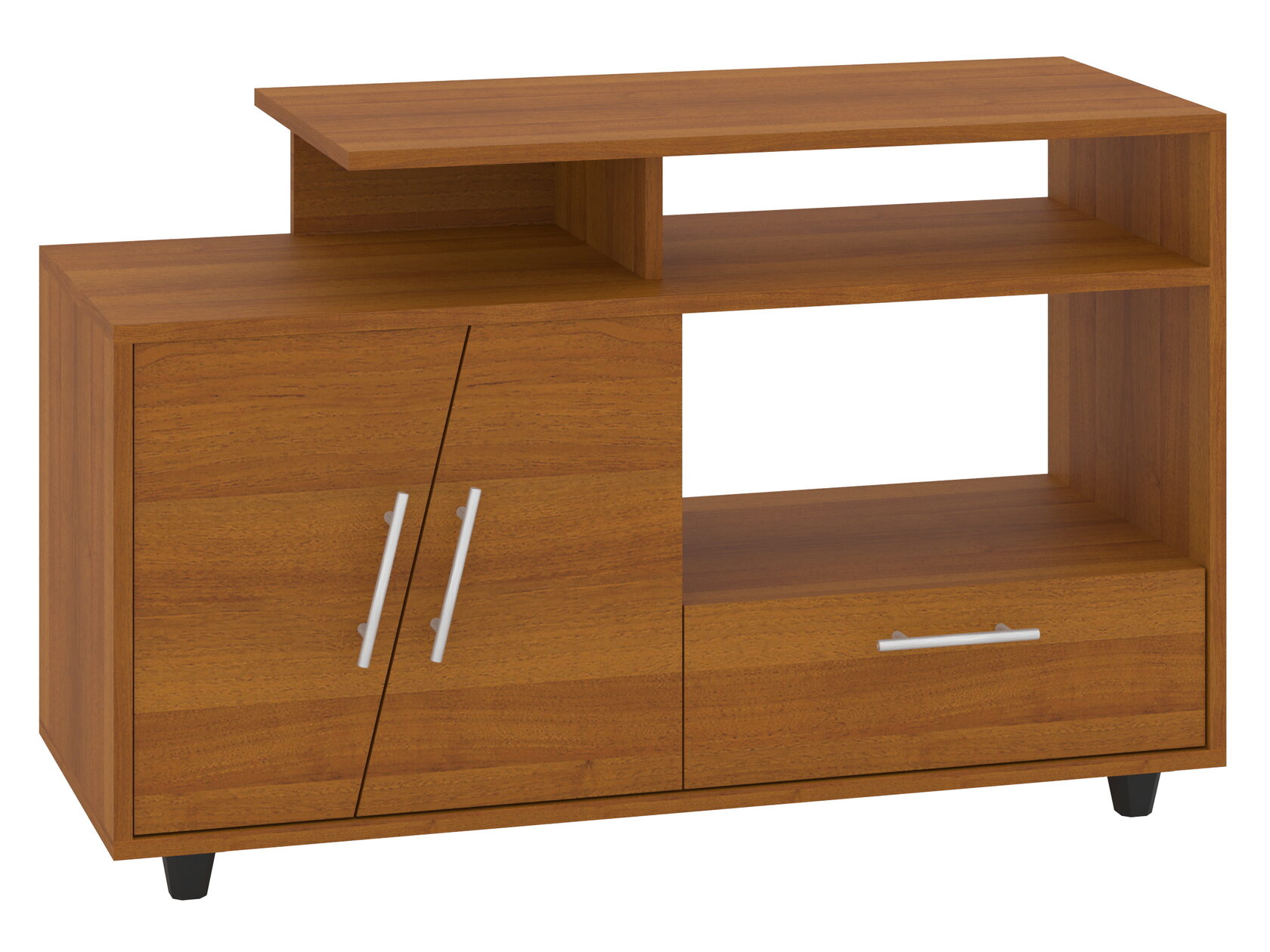 1. Выдвижные ящики: · Количество: 2 просторных ящика. · Оснащение: Направляющие полного выдвижения доводчиком обеспечивают плавный и бесшумный ход. Ящики идеальны для хранения пультов, дисков, игровых консолей, документов и других мелких вещей, которые должны быть под рукой, но не на виду. 2. Открытые полки: · Количество: 1 или 2 полки, расположенные между ящиками или по бокам. · Назначение: Полки обеспечивают быстрый доступ к предметам . На них можно разместить: . Ваши семейные цености · Медиаплеер (Apple TV, Smart TV приставку) · Акустическую систему (саундбар) · Игровую консоль (PlayStation, Xbox) · Небольшую коллекцию книг или декоративных элементов.