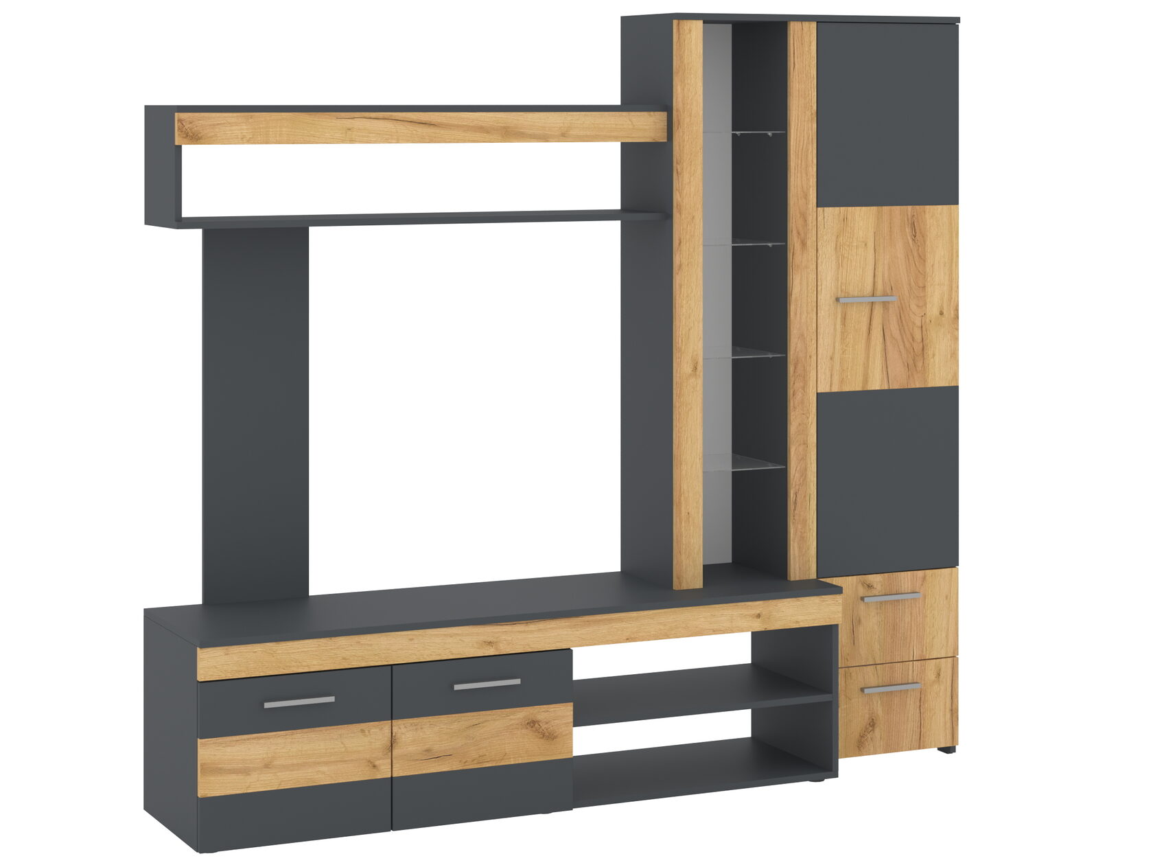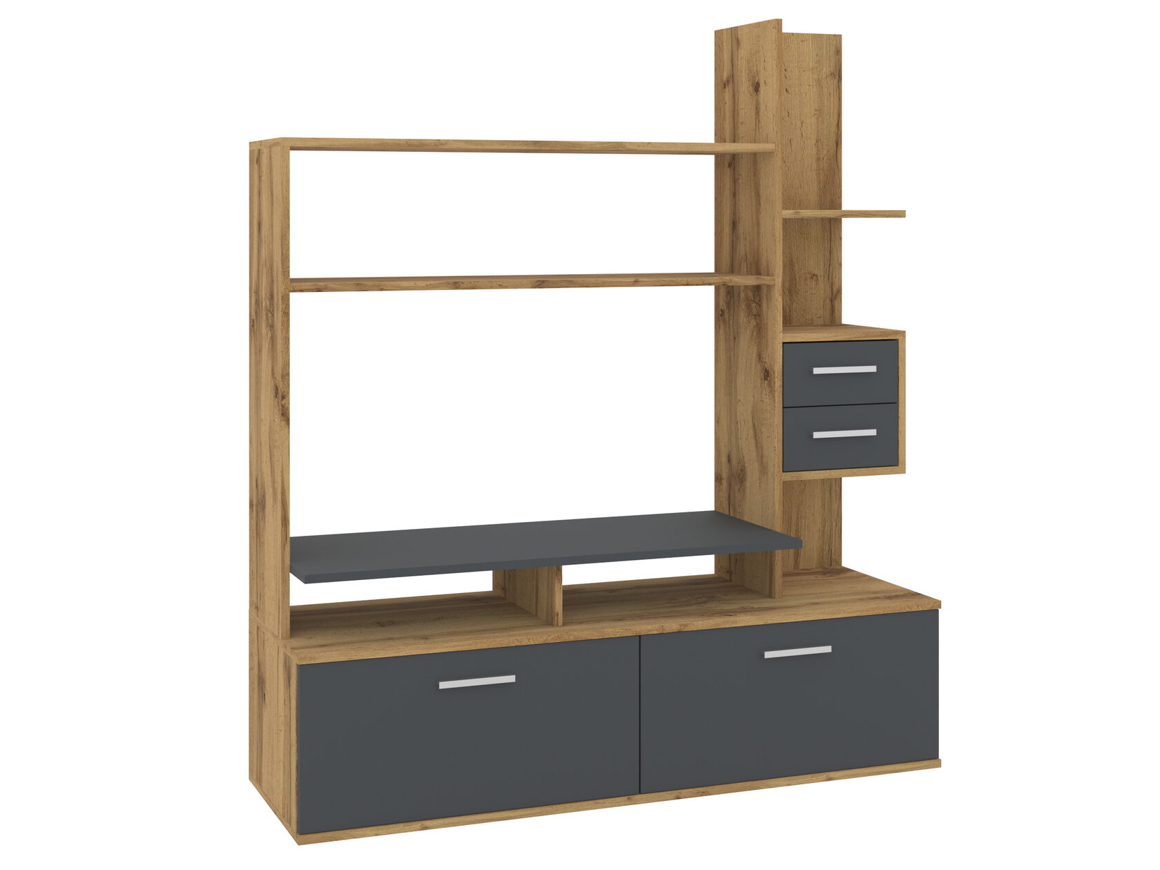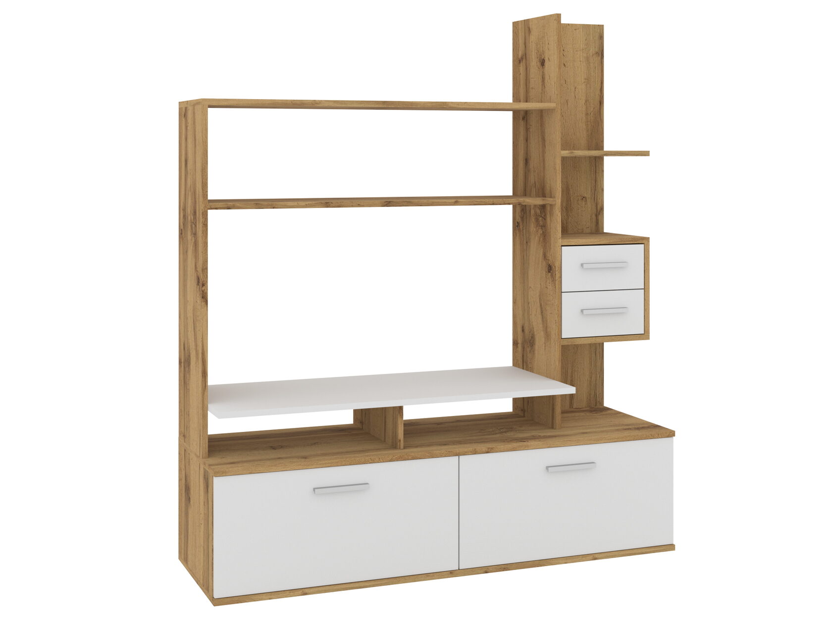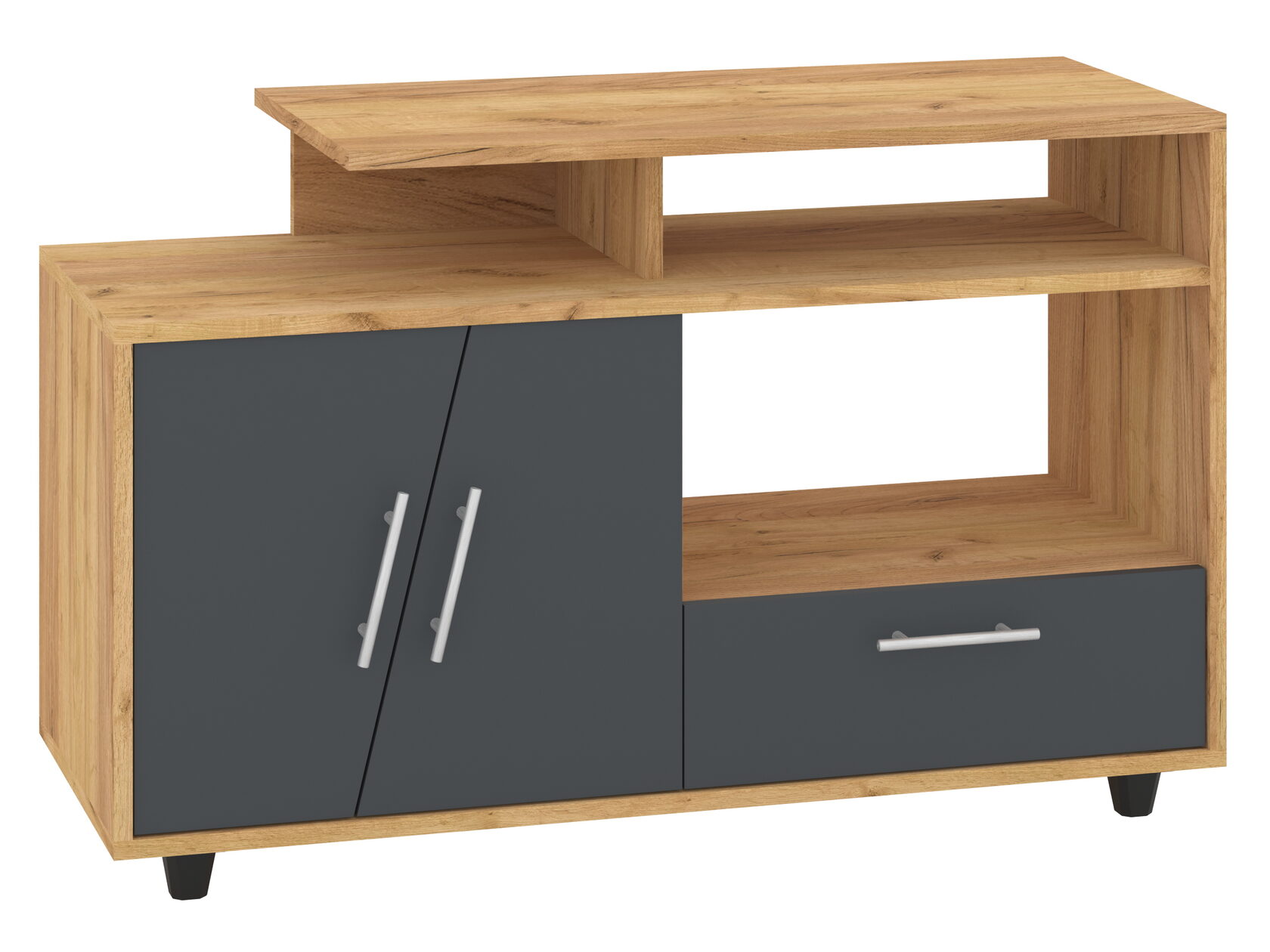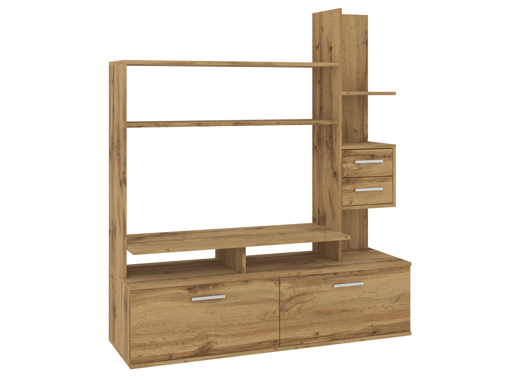 1. Выдвижные ящики: · Количество: 2 просторных ящика. · Оснащение: Направляющие полного выдвижения доводчиком обеспечивают плавный и бесшумный ход. Ящики идеальны для хранения пультов, дисков, игровых консолей, документов и других мелких вещей, которые должны быть под рукой, но не на виду. 2. Открытые полки: · Количество: 1 или 2 полки, расположенные между ящиками или по бокам. · Назначение: Полки обеспечивают быстрый доступ к предметам . На них можно разместить: . Ваши семейные цености · Медиаплеер (Apple TV, Smart TV приставку) · Акустическую систему (саундбар) · Игровую консоль (PlayStation, Xbox) · Небольшую коллекцию книг или декоративных элементов.