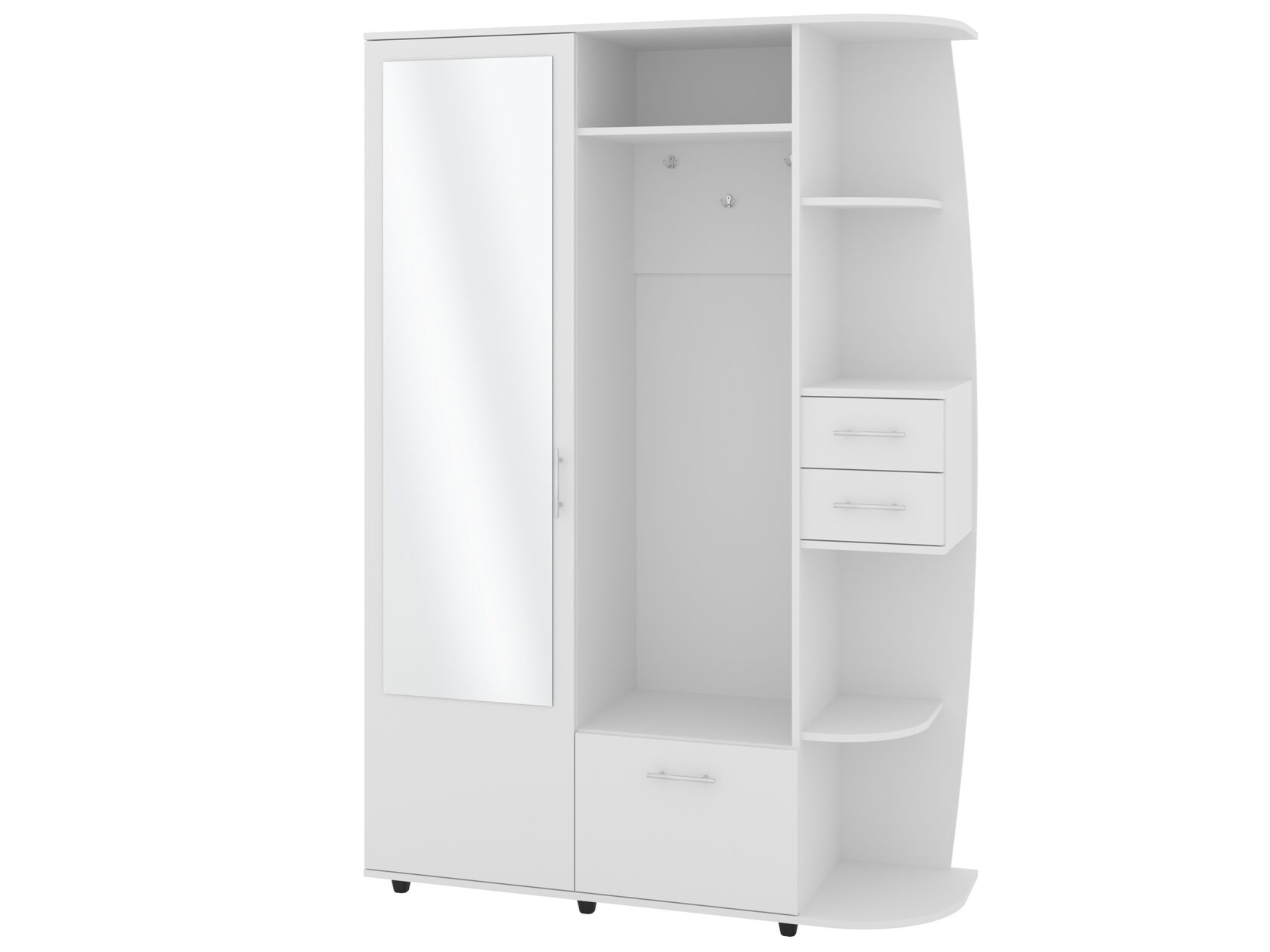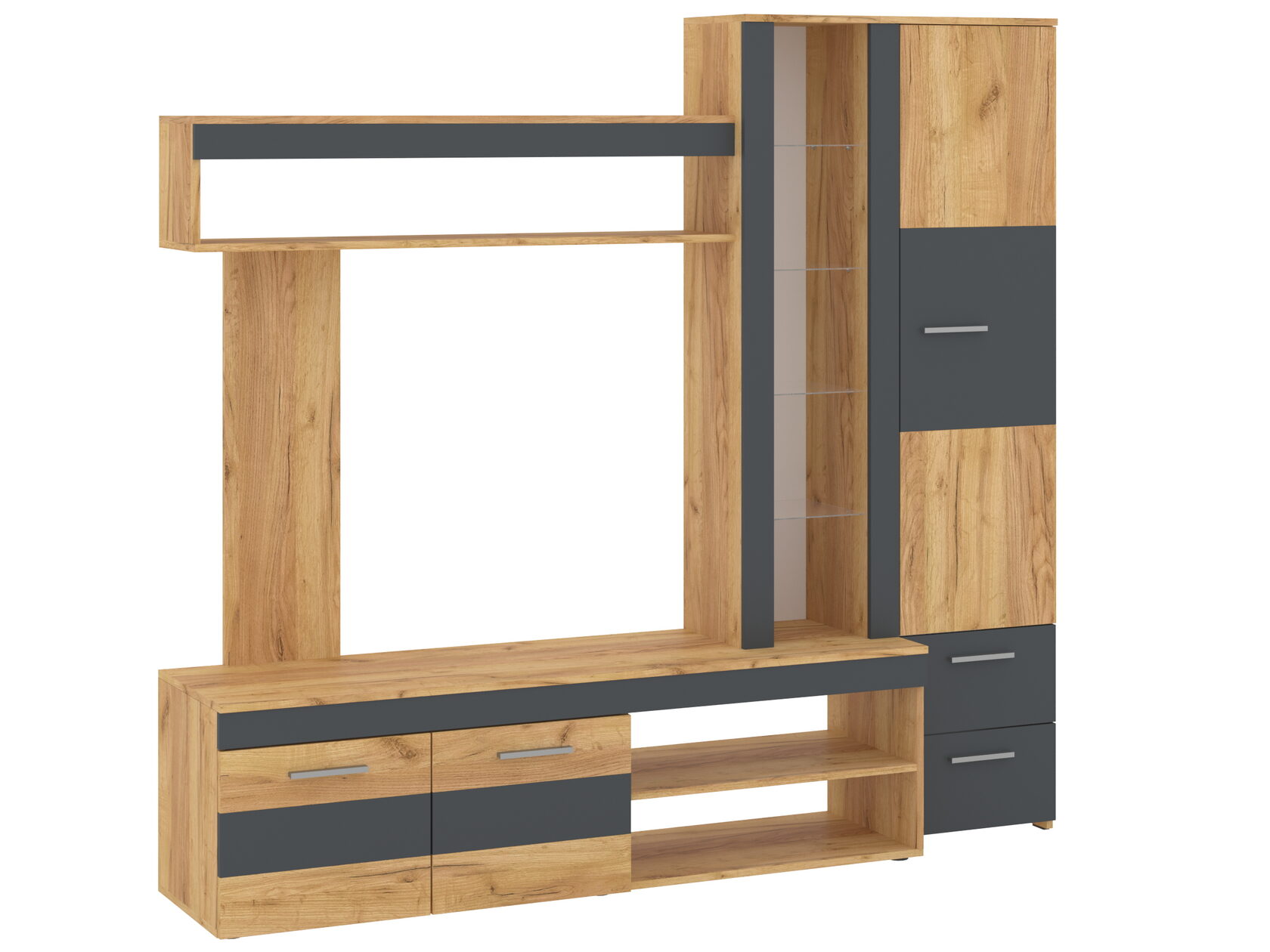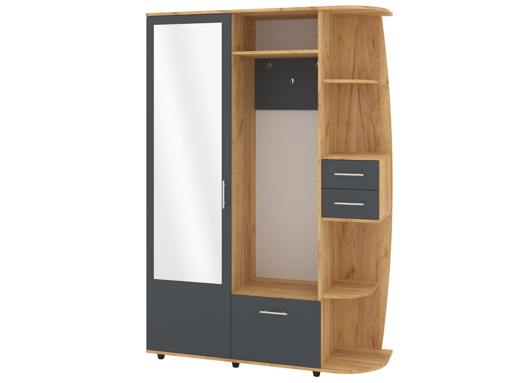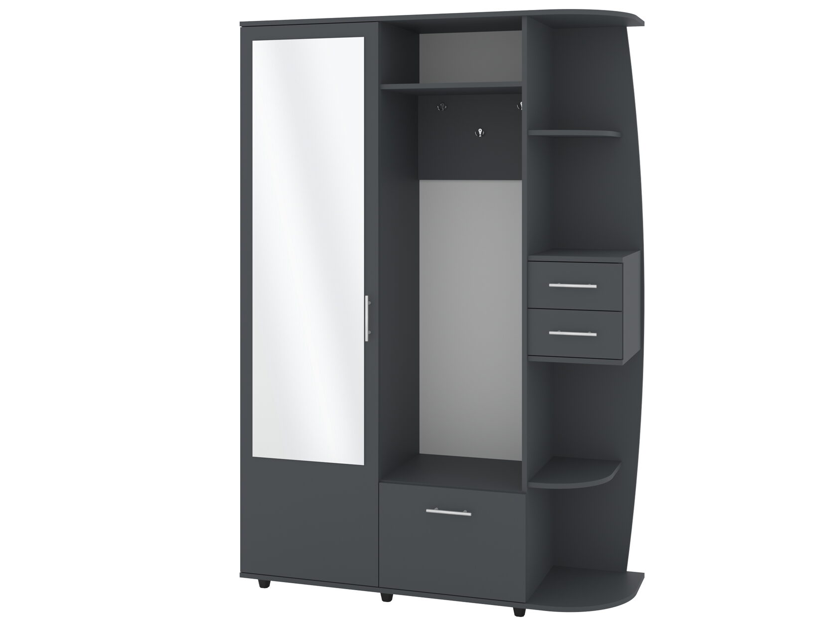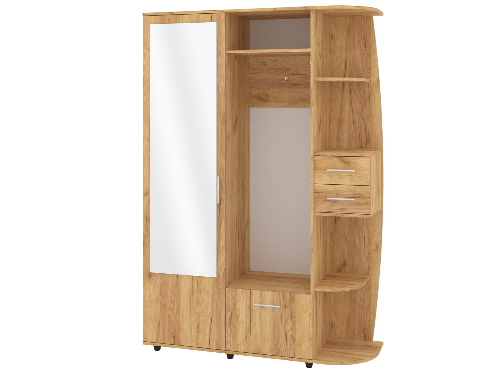 1. Выдвижные ящики: · Количество: 2 просторных ящика. · Оснащение: Направляющие полного выдвижения доводчиком обеспечивают плавный и бесшумный ход. Ящики идеальны для хранения пультов, дисков, игровых консолей, документов и других мелких вещей, которые должны быть под рукой, но не на виду. 2. Открытые полки: · Количество: 1 или 2 полки, расположенные между ящиками или по бокам. · Назначение: Полки обеспечивают быстрый доступ к предметам . На них можно разместить: . Ваши семейные цености · Медиаплеер (Apple TV, Smart TV приставку) · Акустическую систему (саундбар) · Игровую консоль (PlayStation, Xbox) · Небольшую коллекцию книг или декоративных элементов.