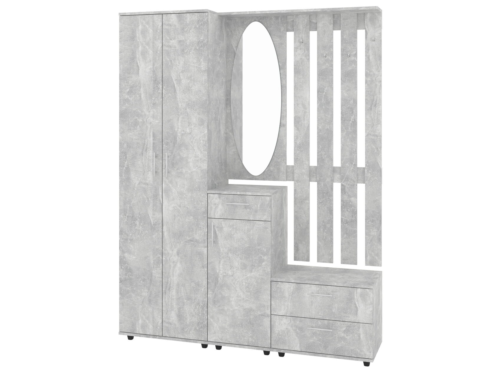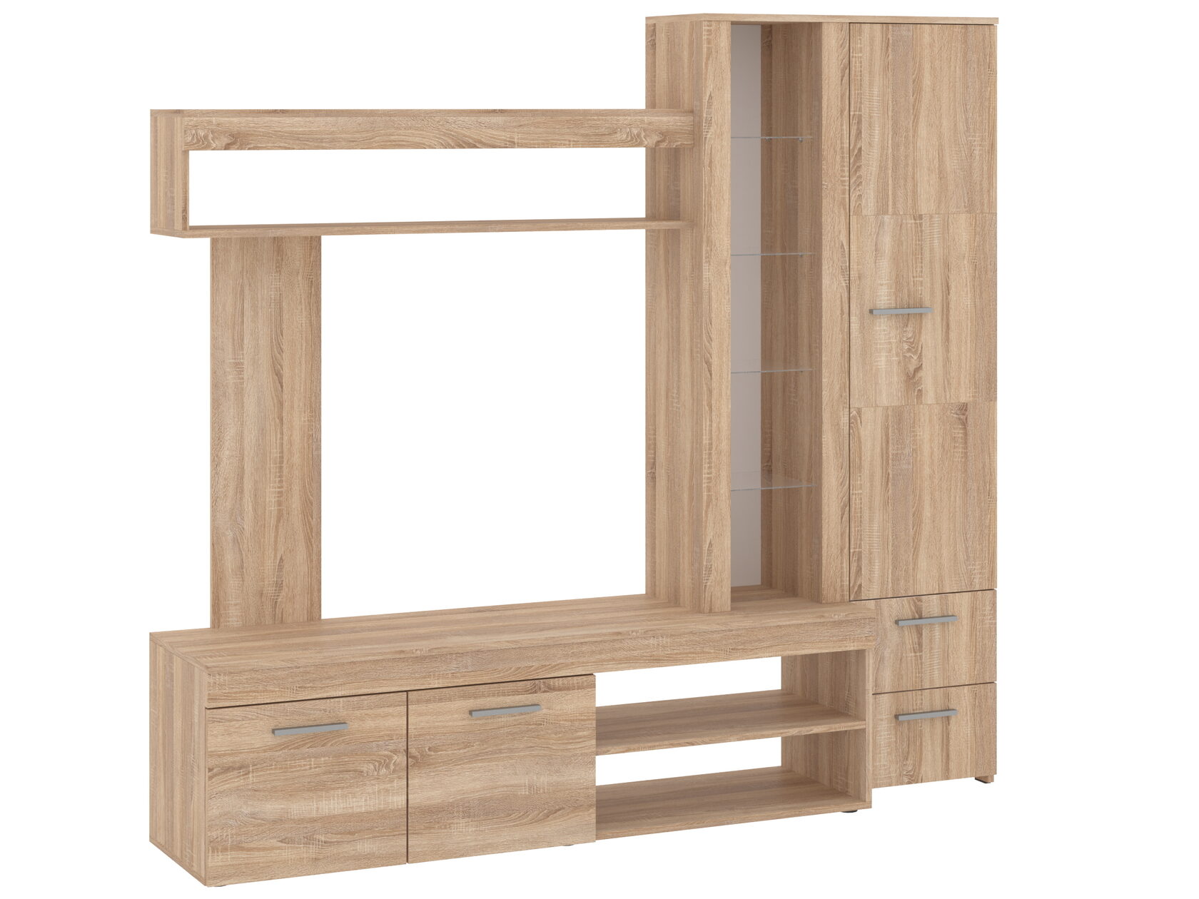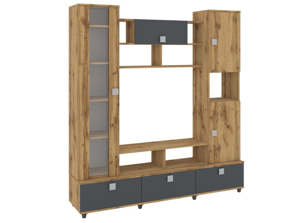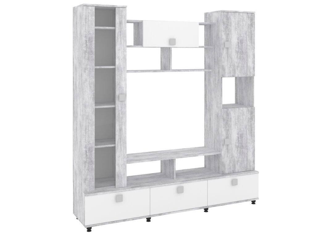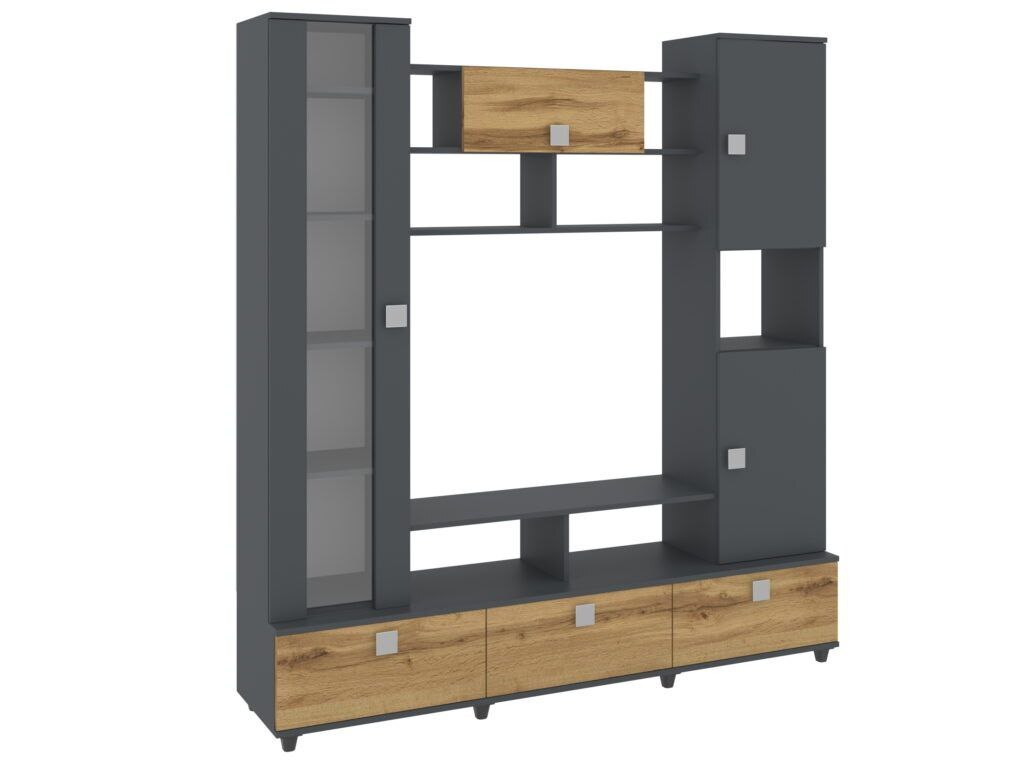 Характеристики: · Габариты (В x Ш x Г): 1200 x 1200 x 300 мм. Высота в 120 см комфортна для просмотра с дивана или кресла, а компактная глубина (30 см) позволяет тумбе не загромождать пространство, сохраняя ощущение легкости. · Стиль: Современный, минимализм или скандинавский. Четкие геометрические формы и комбинация материалов делают ее универсальной для большинства интерьеров.