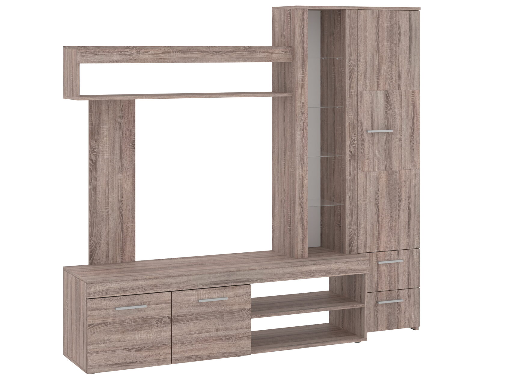 Дополнительные преимущества: · Техническая оснастка: В задней стенке предусмотрены технологические отверстия для удобного и аккуратного прокладывания всех кабелей, что помогает поддерживать идеальный порядок. · Устойчивость: Конструкция прочная и устойчивая, рассчитана на значительный вес телевизора и оборудования. · Универсальность: Благодаря нейтральному дизайну и комбинированной расцветке, тумба легко впишется в уже существующий интерьер или станет отправной точкой для создания нового стиля.